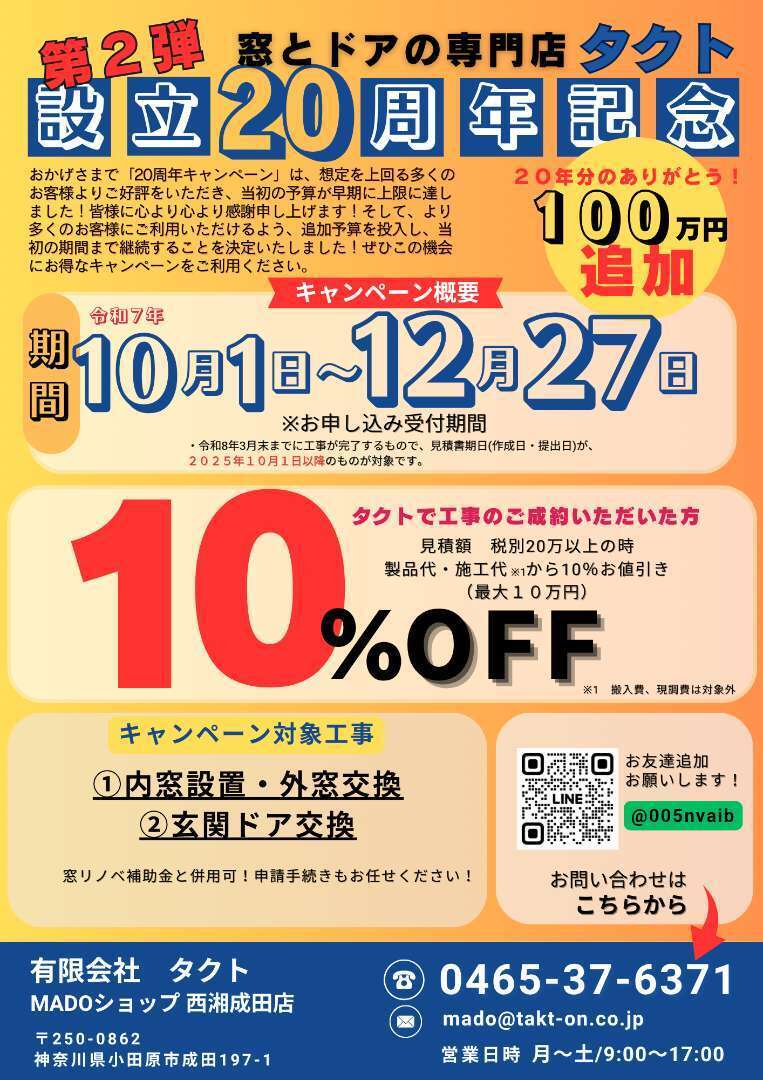 🔨製品代、施工代から10%お値引き(最大10万円)