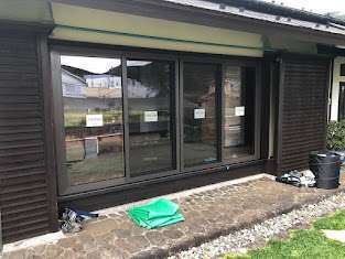 こちらの大きな窓は廊下に面していて南向きにも関わらず、冬場は冷気がかなり入ってくる為、ファンヒーター2台で対応されていたそうです。既存の窓はお父様のセンスでかなり素敵なものでしたが、いつも廊下を行き来するお母様の為、暖かくしたいとのご要望により、出来るだけ見た目はそのままに断熱性能をUPする工事を行いました。