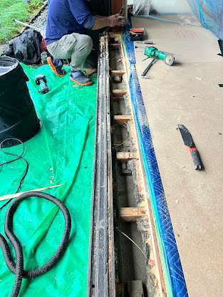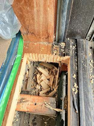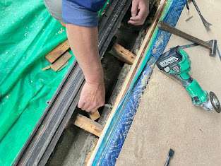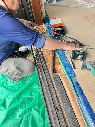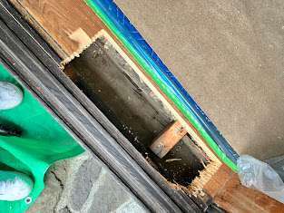 今回の工事はカバー工法に見えますが、通常のカバー工法では下枠が5cm立ち上がってしまい、よく出入りする窓としては使い勝手が悪く不便になってしまう為、対策として既存木製の下枠を切り取り4.5cm沈めることで問題を解消し、極力フラットで使い勝手の良い外窓としました。